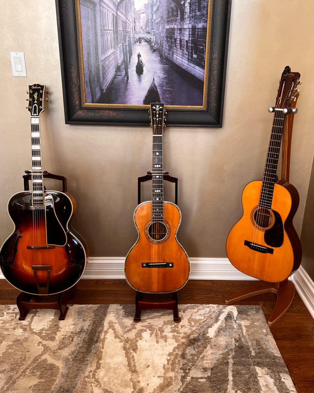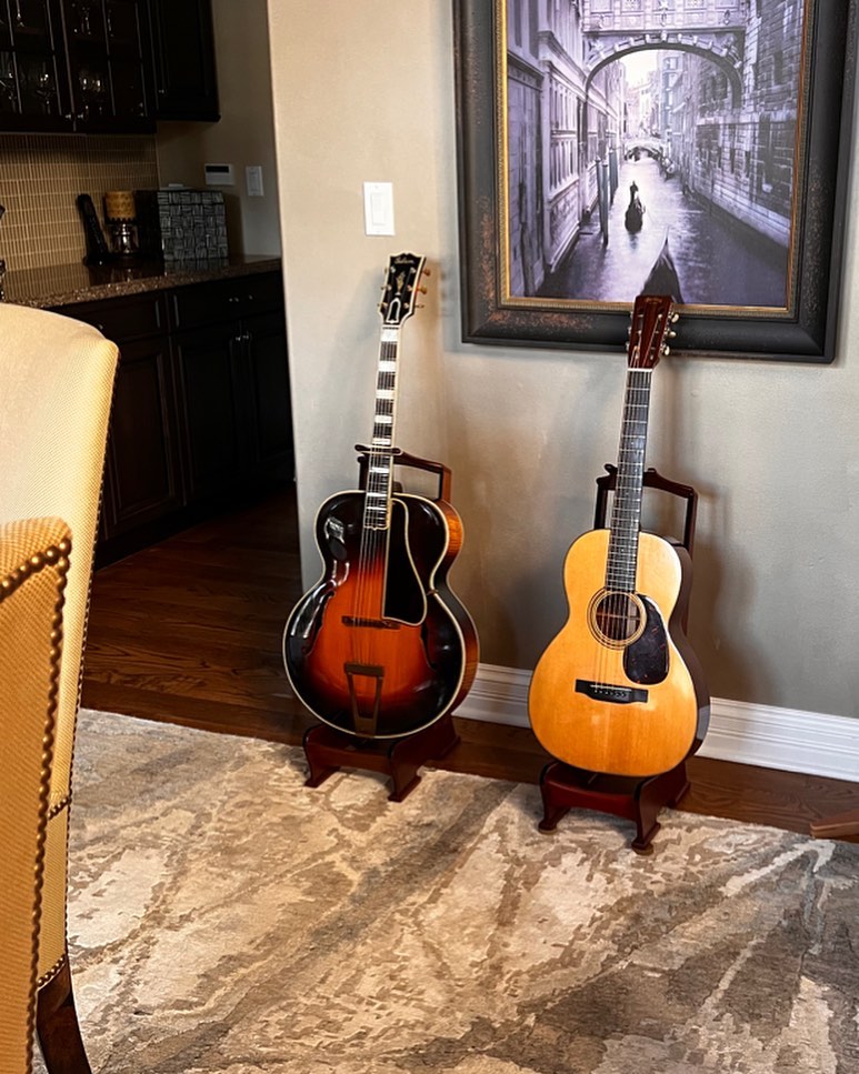 I live on these guitars. I’ll go to electric and when I do the old arch tops and Martins always make me a better electric player. 1935 L5 and a Pre War 00-21. My other two favorites are a Pre War 00-42 and a 00-45. I’ll get back into electric mode soon enoughSometimes I prefer a bone bridge on an old Martin. It gives it a different tone and can be amazing. I put this one in a pre war 00-21 and it made the guitar even better. They don’t always work so you just gotta try them. But when it works it’ll blow you away.Cleanup day. Left to right – 1935 L5, 1928 Larson Brothers, 1940 Marin00-21. Enough for one morning.